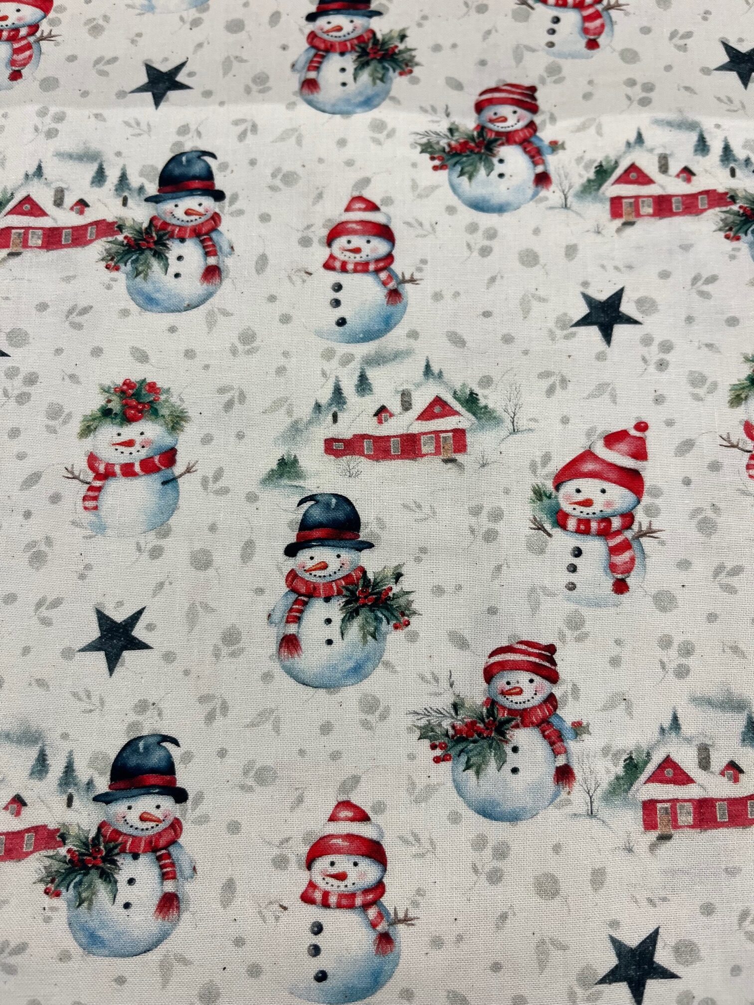 Baumwolle Webware Schneemann auf Ecru, eine schöne Baumwolle für die