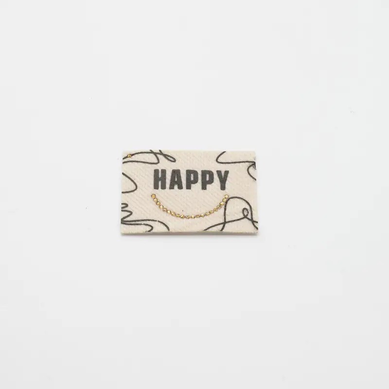 Happy Label Iron on Ecru, perfekt zum Individualisieren von