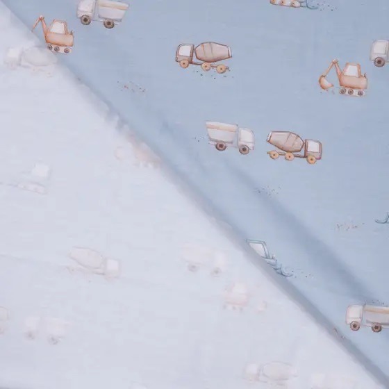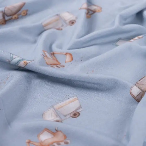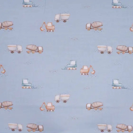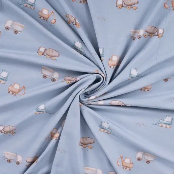 Jersey Baufahrzeuge auf blau ist ein Jersey mit einem sehr weichem und angenehmen Griff.