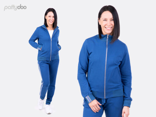 Das Schnittmuster Pattydoo Hanna Damen Collegejacke ist eine lässige Collegejacke mit Reißverschluss, Leistentaschen und Bündchen. Du kannst sie wahlweise mit einem schicken Bündchenkragen oder einem sportlichen Stehkragen nähen. Mit diesem trendigen Teil bist du das ganze Jahr über perfekt gekleidet!