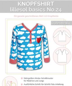 Das Papier-Schnittmuster enthält eine farbig gedruckte DinA4-Broschüre mit Schritt-für-Schritt-Fotoanleitung, Angaben zum Stoffverbrauch & Nähhinweisen sowie alle Schnittmuster für die Größen 80 – 164 auf einem farbigen DinA0-Bogen. Als Extra liegt dem Schnittmuster eine Maxi-Karteikarte für individuelle Nähnotizen bei.