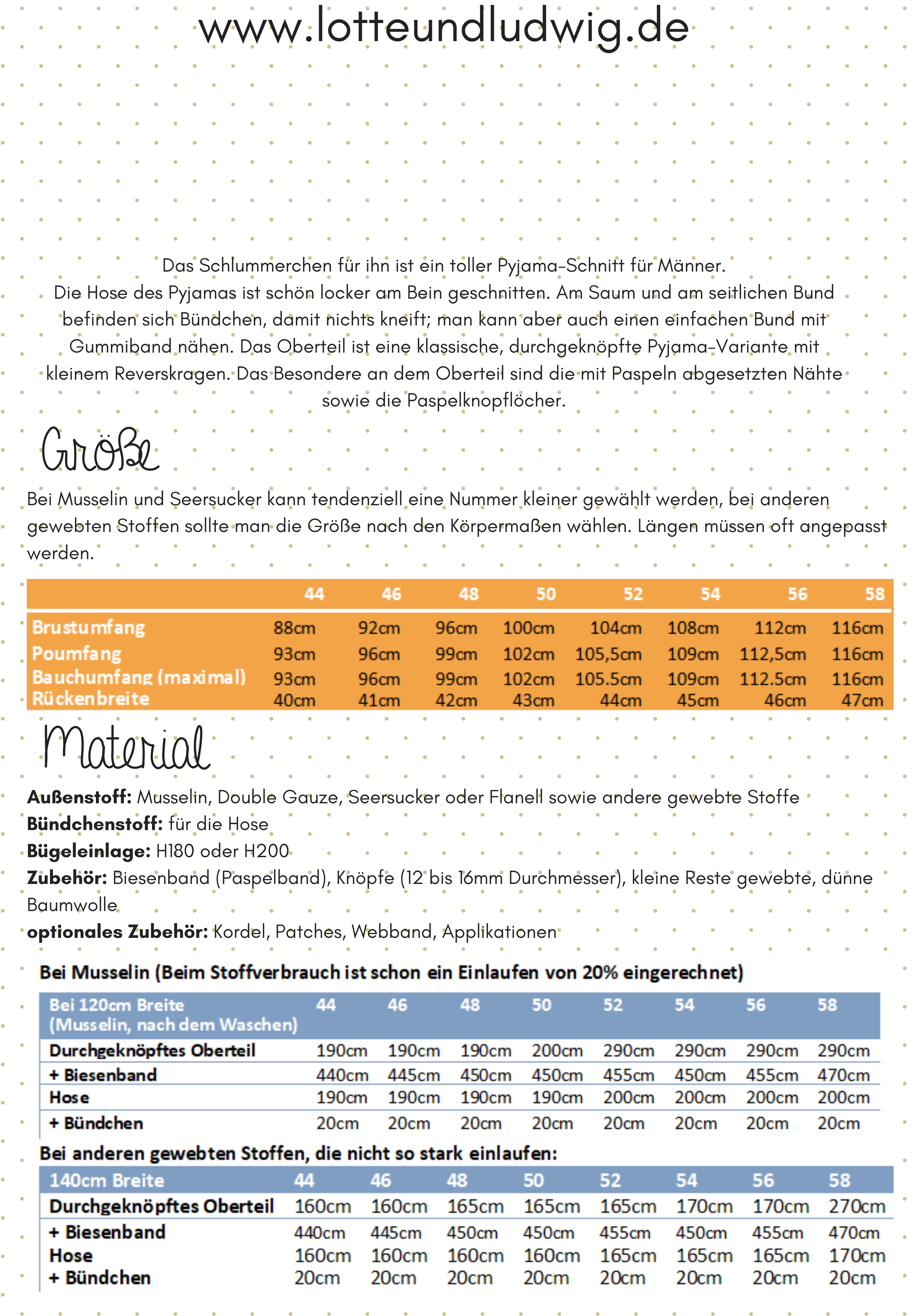 Schnittmuster Lotte und Ludwig Schlummerchen für ihn 2 in 1 Gr. 44- 58