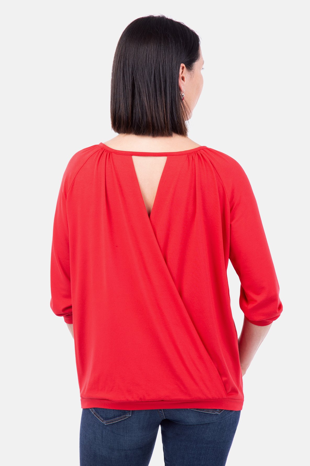 Mit dem Schnittmuster Pattydoo Carmen Damenshirt und Bluse kannst du wundervolle Damenshirts aus Viskosejersey und elegante Blusen aus gewebten Stoffen nähen. Die lockere Schnittführung mit Raglanärmeln macht es möglich. Das Rückenteil in raffinierter Wickeloptik oder ein Schlitz am Vorderteil sorgen für schmeichelnde, kleine Einblicke. Die Shirtvariante wird mit bequemen Bündchenabschlüssen genäht, die Bluse wahlweise mit gerundetem Saum oder Gummibund. Beide haben dreiviertellange Ärmel. Mit dem gekräuselten und eingefassten Ausschnitt wird dein Dekolleté an warmen Frühlingstagen alle Blicke auf sich ziehen!