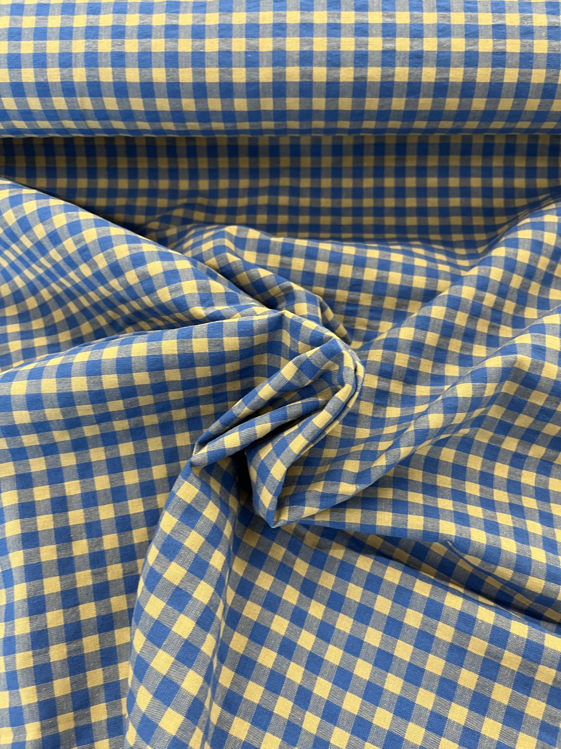 Seersucker Karo blau gewebt, ist eine schöne weiche Baumwolle.